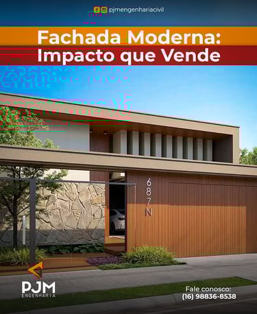 No mercado imobiliário, a primeira impressão define o interesse do comprador. Fachadas modernas e bem executadas agregam valor imediato ao imóvel. A PJM Engenharia executa obras residenciais com foco em estética contemporânea, alinhamento estrutural e acabamento de qualidade. Quer destacar seu imóvel no mercado? 📞 Fale com a PJM Engenharia: (16) 98836-8538